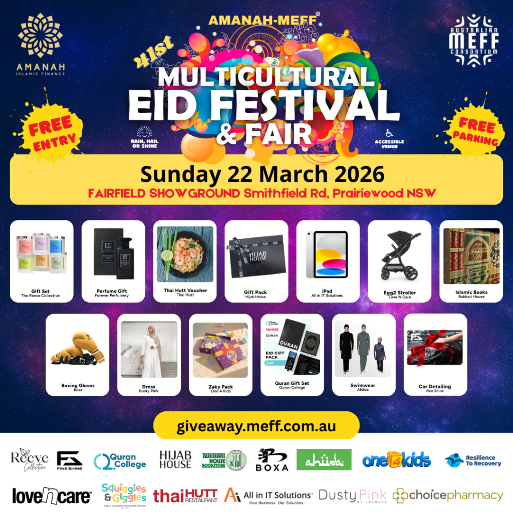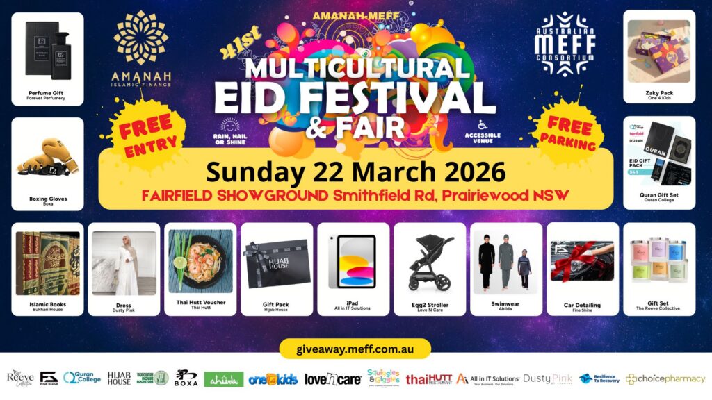 MEFF Multicultural Eid Festival and Fair on Sunday 22 March 2026 at Fairfield Showground, Smithfield Rd, Prairiewood and experience Multiculturalism at its best with thousands of people from over 35 cultural backgrounds.